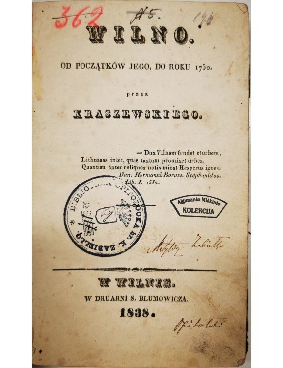 Wilno. Od początkow jego, do roku 1750. I. Kraszewski. Wilno, 1838.