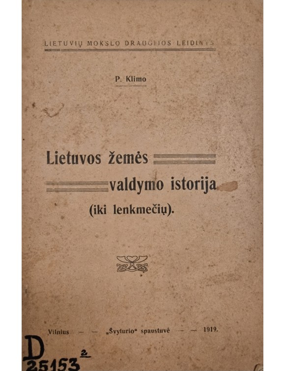 Lietuvos žemės valdymo istorija. P. Klimo. Vilnius, 1919.