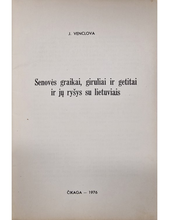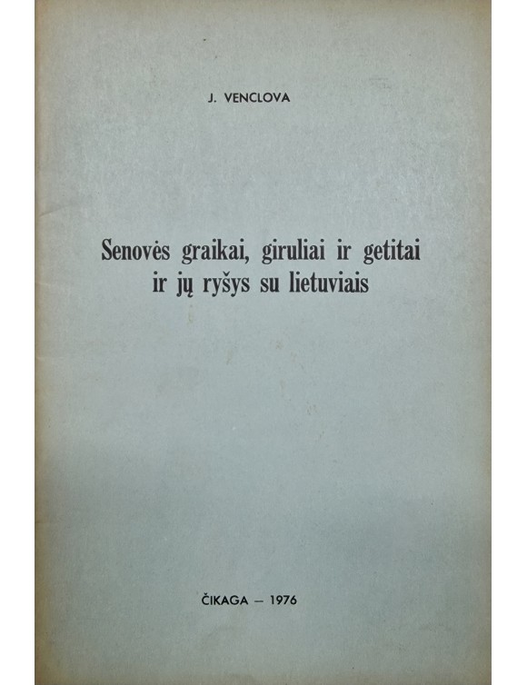 Senovės graikai, giruliai ir getitai ir jų ryšys su lietuviais. J. Venclova. Čikaga, 1976.
