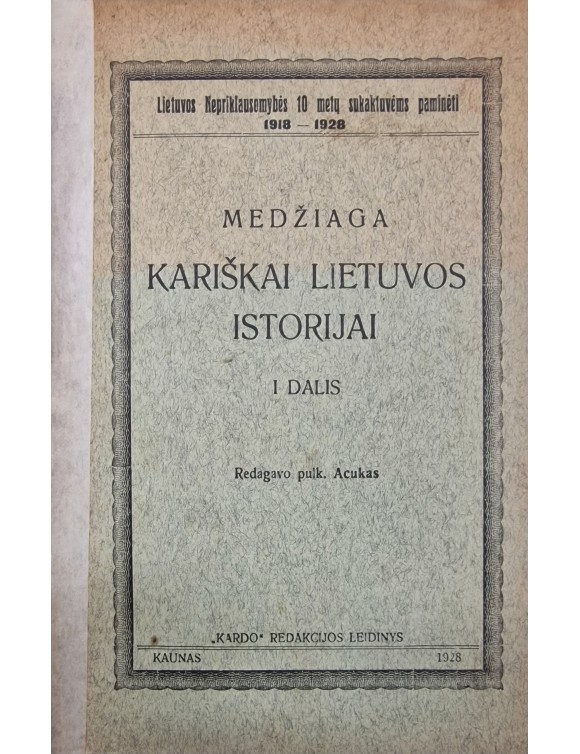 Medžiaga kariškai Lietuvos istorijai. D.1. Kaunas, 1928.