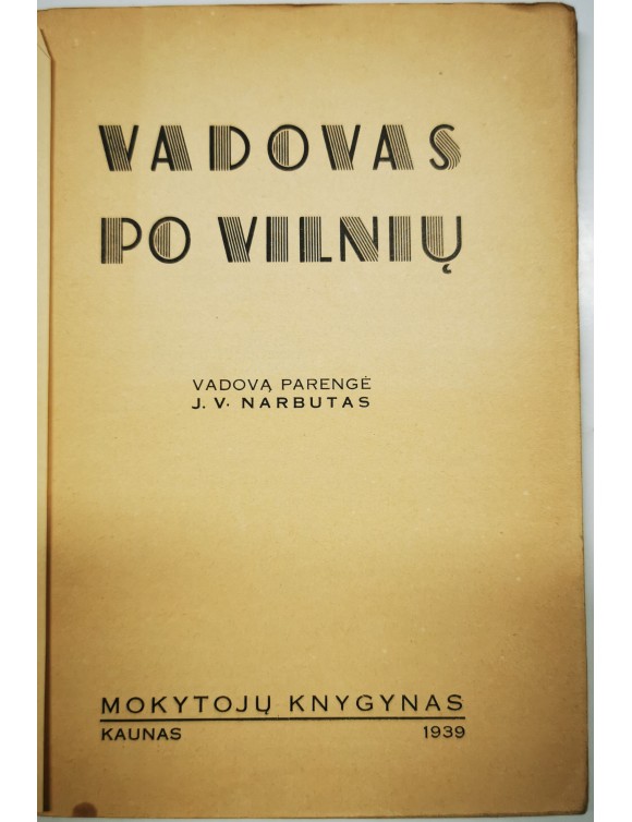 Vadovas po Vilnių. J. V. Narbutas. Kaunas, 1939. 63 psl.