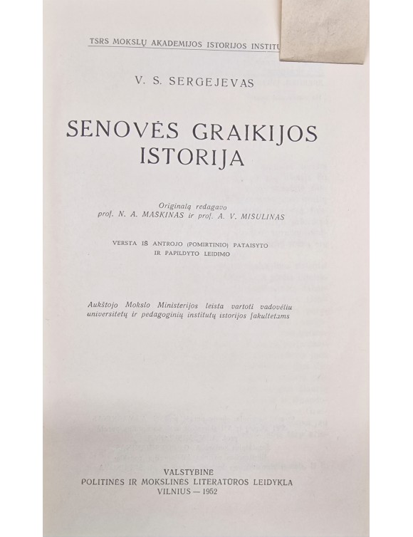 Senovės Graikijos istorija. V. S. Sergejevas. Vilnius, 1952.