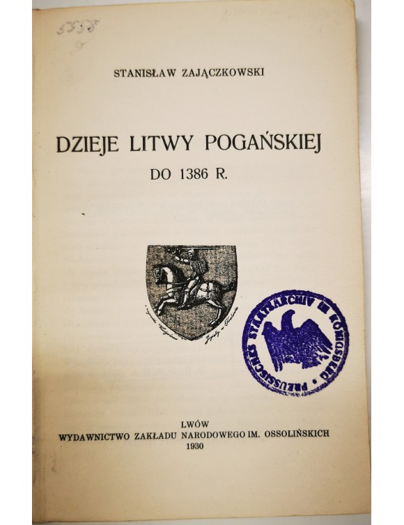 Dzieje Litwy Poganskiej do 1386 R. S. Zajączkowski. Lwow, 1930. 77 psl.