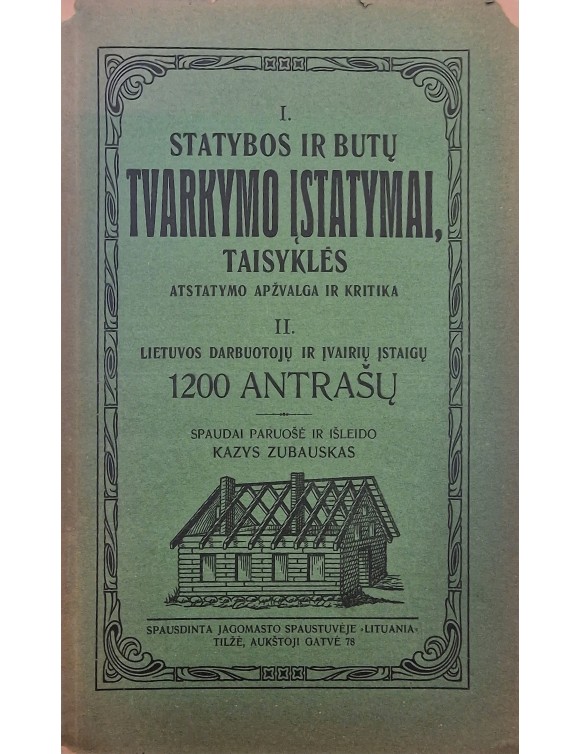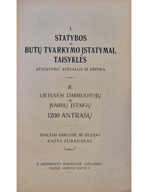 Statybos ir butų tvarkymo įstatymai, taisyklės atstatymo apžvalga ir kritika. Sud. K. Zubauskas. Tilžė, [1922].