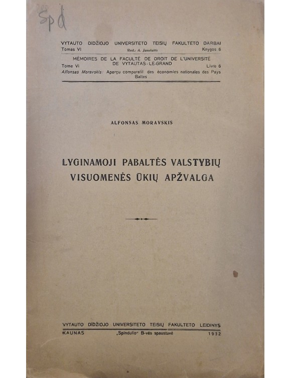 Lyginamoji Pabaltės valstybių visuomenės ūkių apžvalga. A. Moravskis. Kaunas, 1932