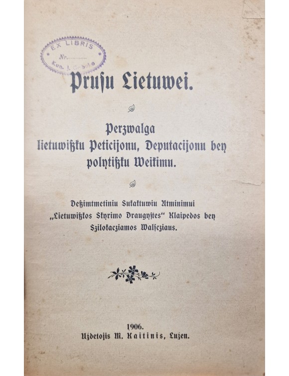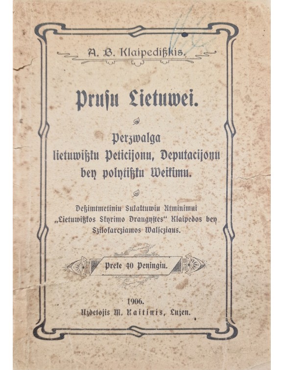 Prusu Lietuwei. A. B. Klaipediškis [Ancas Bruožis]. 1906.