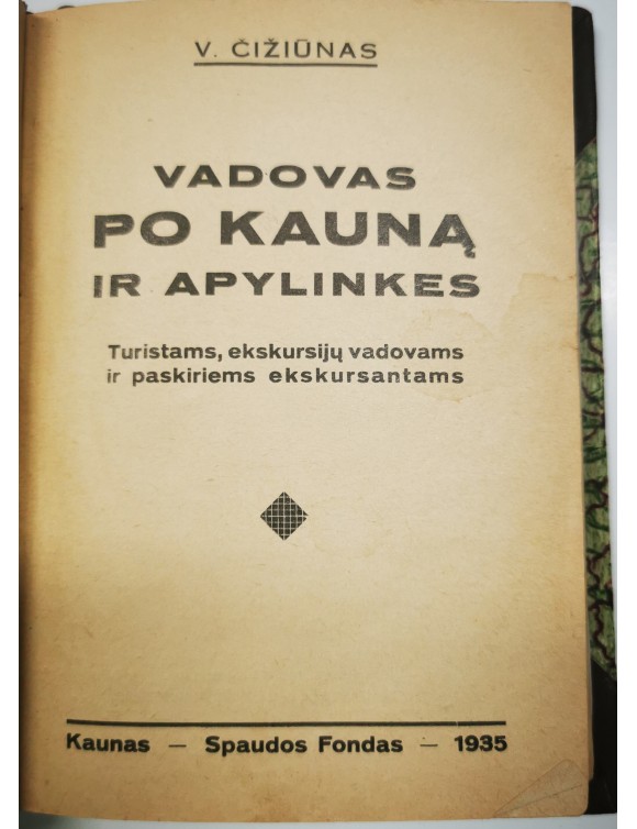 Vadovas po Kauną ir apylinkes. V. Čižiūnas. Kaunas, 1935. Su žemėlapiu.