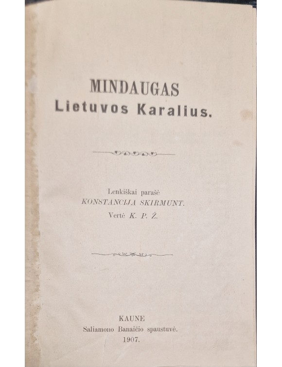 Mindaugas Lietuvos Karalius. K. Skirmunt. Kaunas, 1907.