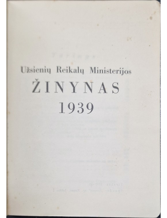 Užsienių Reikalų Ministerijos žinynas 1939. Kaunas.