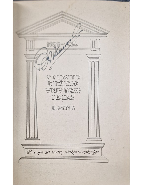 Vytauto Didžiojo universitetas Kaune 1922-1932. Trumpa 10 metų veikimo apžvalga.