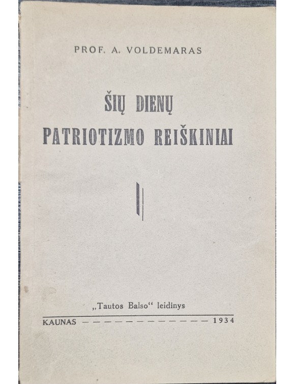 Šių dienų patriotizmo reiškiniai. A. Voldemaras. Kaunas, 1934.