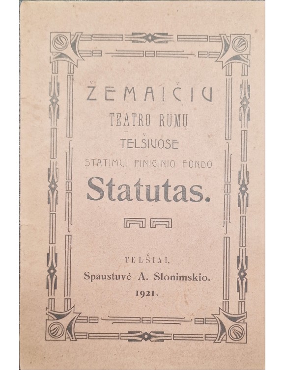 Žemaičių teatro rūmų Telšiuose statimui piniginio fondo statutas. Telšiai, 1921.
