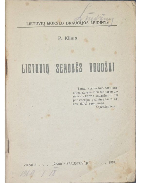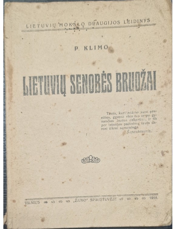 Lietuvių senobės bruožai. P. Klimo. Vilnius, 1919.
