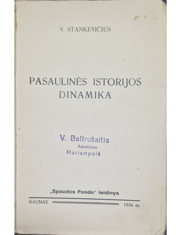 Pasaulinės istorijos dinamika. V. Stankevičius. Kaunas, 1934.