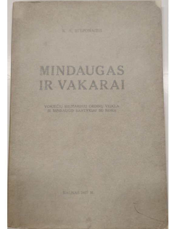 Mindaugas ir vakarai. Vokiečių militarinių ordinų veikla ir Mindaugo santykiai su Roma. K. A. Steponaitis. Kaunas, 1937.
