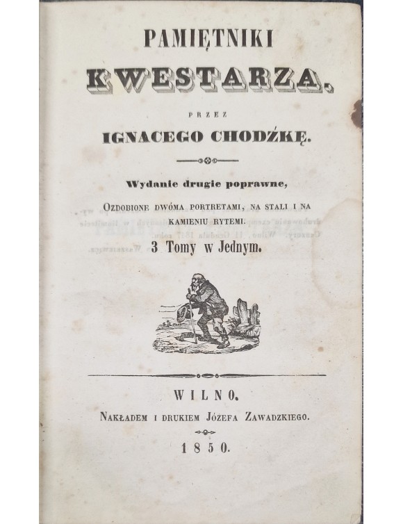 Pamiętniki Kwestarza. I. Chodzki. Wilno, 1850. Trys tomai vienoje knygoje.