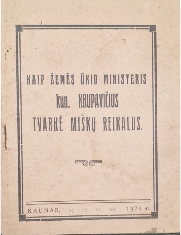 Kaip žemės ūkio ministeris kun. Krupavičius tvarkė miškų reikalus. Kaunas, 1926.