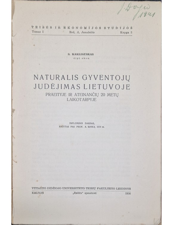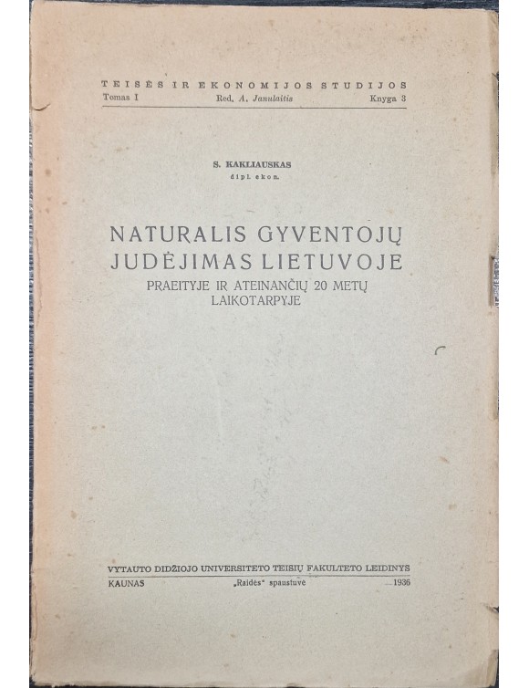 Naturalis gyventojų judėjimas Lietuvoje. S. Kakliauskas. Kaunas, 1936.