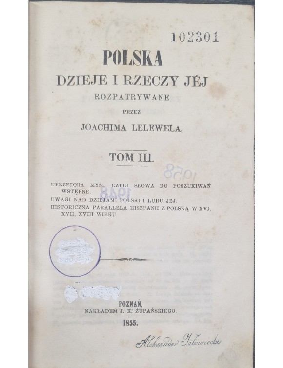 Polska Dzieje i Rzeczy jej Rozpatrywane. J. Lelewel. T. 3. Poznan, 1855.