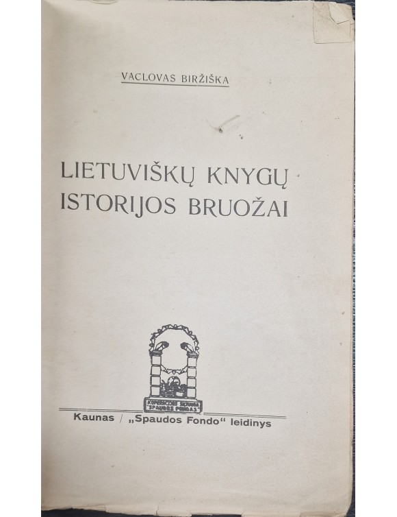 Lietuviškų knygų istorijos bruožai. V. Biržiška. Kaunas, 1930.