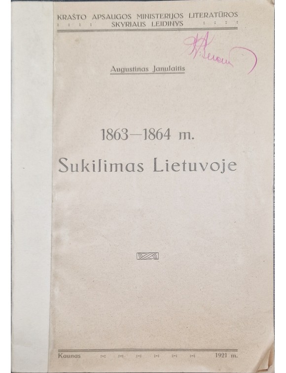 1863-1864 m. Sukilimas Lietuvoje. A. Janulaitis. Kaunas, 1921. Be viršelių.