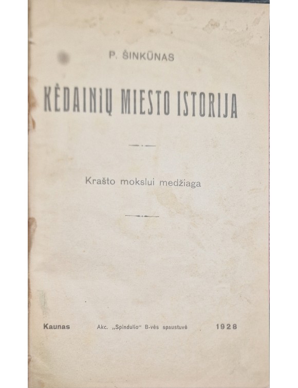 Kėdainių miesto istorija. P. Šinkūnas. Kaunas, 1928.