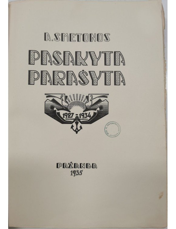 Pasakyta parašyta. A. Smetonos. Kaunas, 1935.