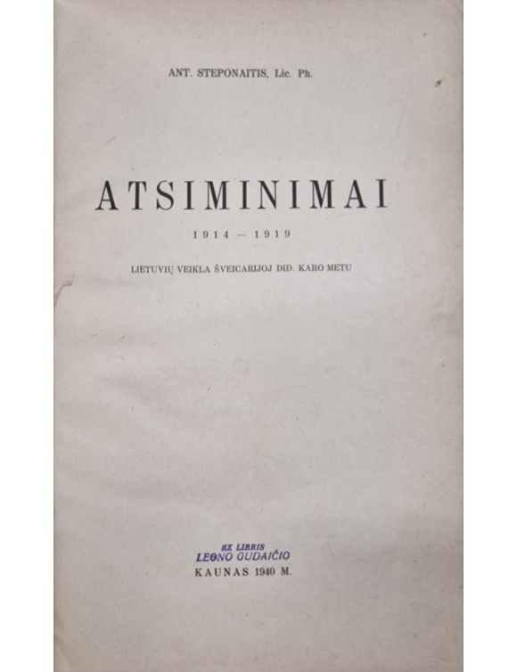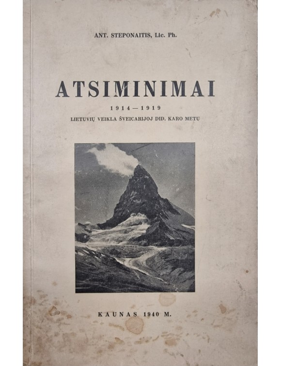 Atsiminimai 1914-1919. Lietuvių veikla Šveicarijoj did. karo metu. A. Steponaitis. Kaunas, 1940.