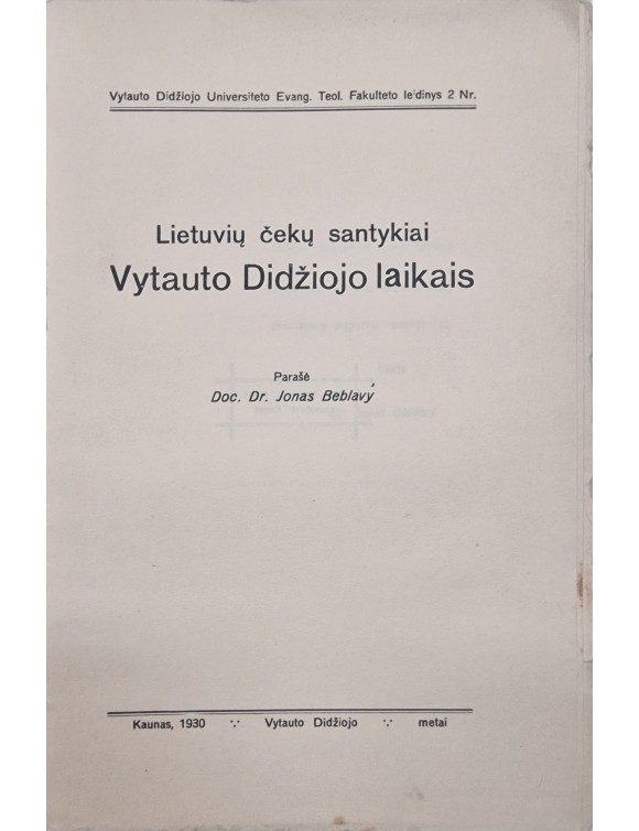Lietuvių Čekų santykiai Vytauto Didžiojo laikais. J. Beblavy. Kaunas, 1930.