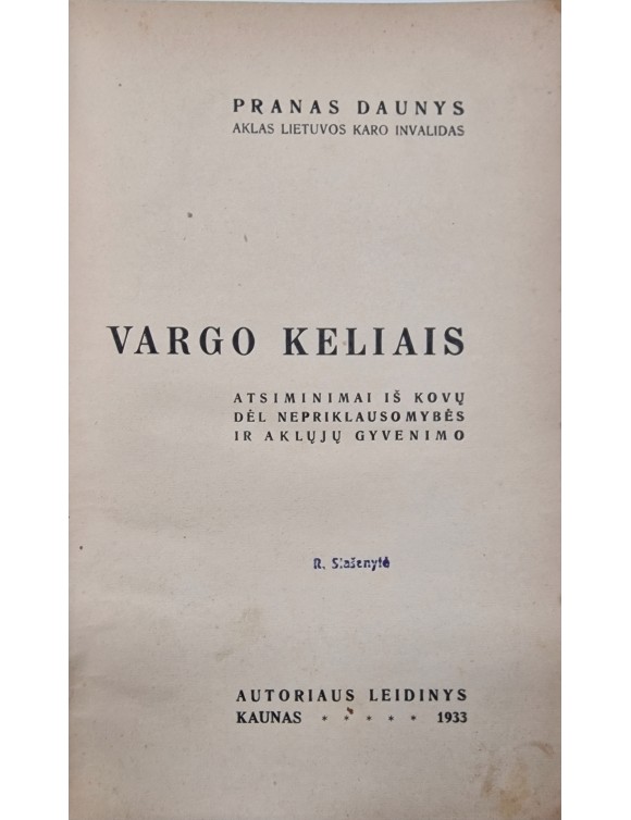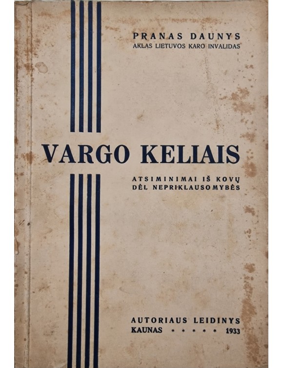 Vargo keliais. P. Daunys. Kaunas, 1933.