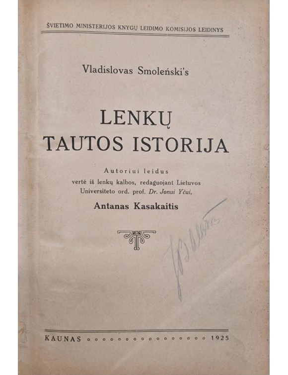 Lenkų tautos istorija. V. Smolenskis. Kaunas, 1925.