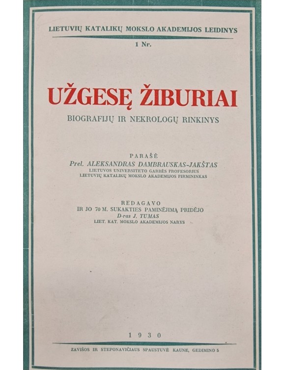 Užgesę žiburiai. Biografijų ir nekrologų rinkinys. A. Dambrauskas-Jakštas. Kaunas, 1930.