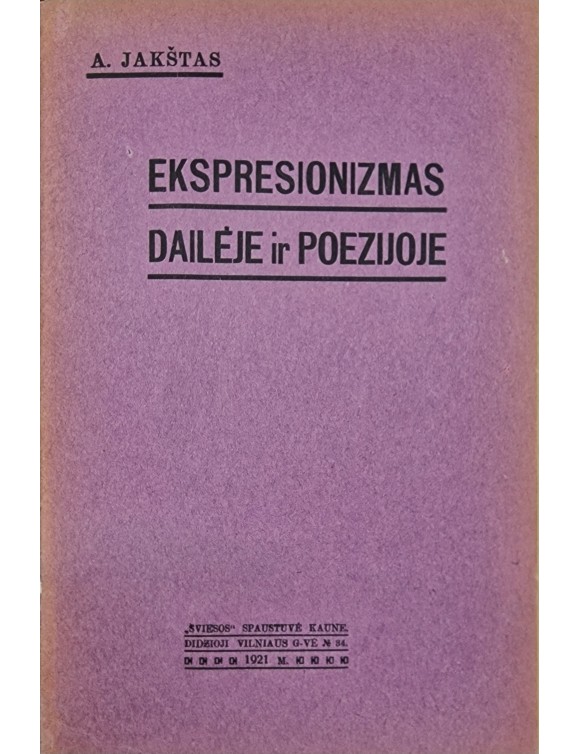 Ekspresionizmas dailėje ir poezijoje. A. Jakštas. Kaunas, 1921.