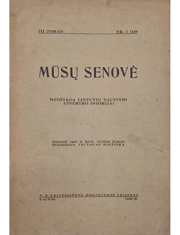 Mūsų senovė. T.3, kn.1. Kaunas, 1940.