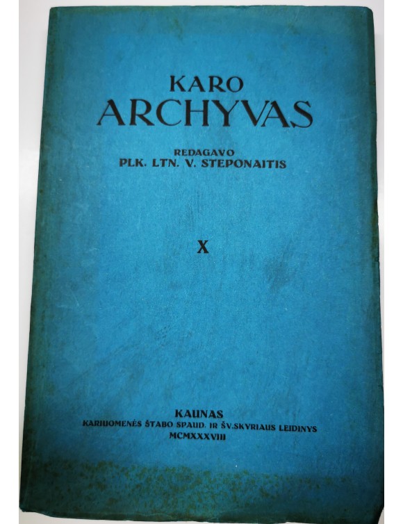 Karo archyvas. T. 10. Kaunas, 1938. 311 psl.