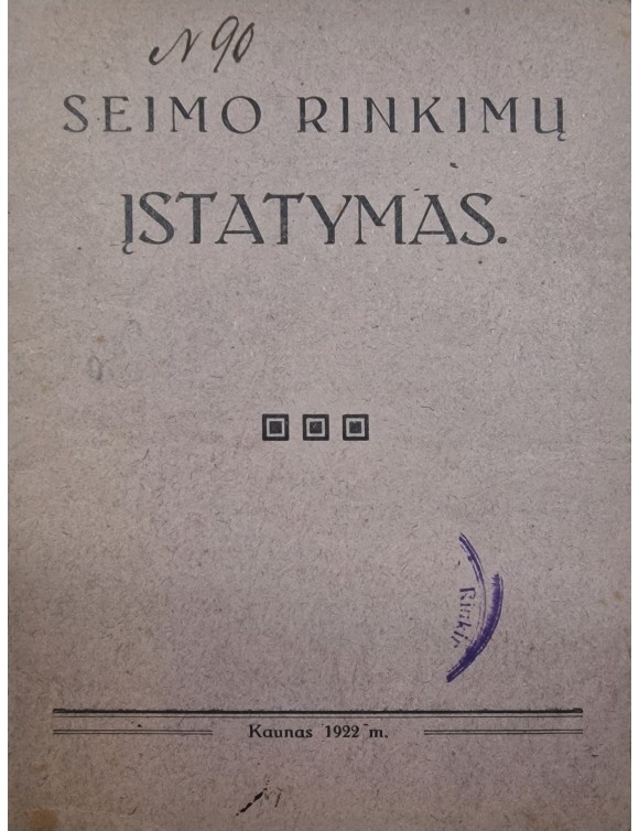 Seimo rinkimų įstatymas. Kaunas, 1922.
