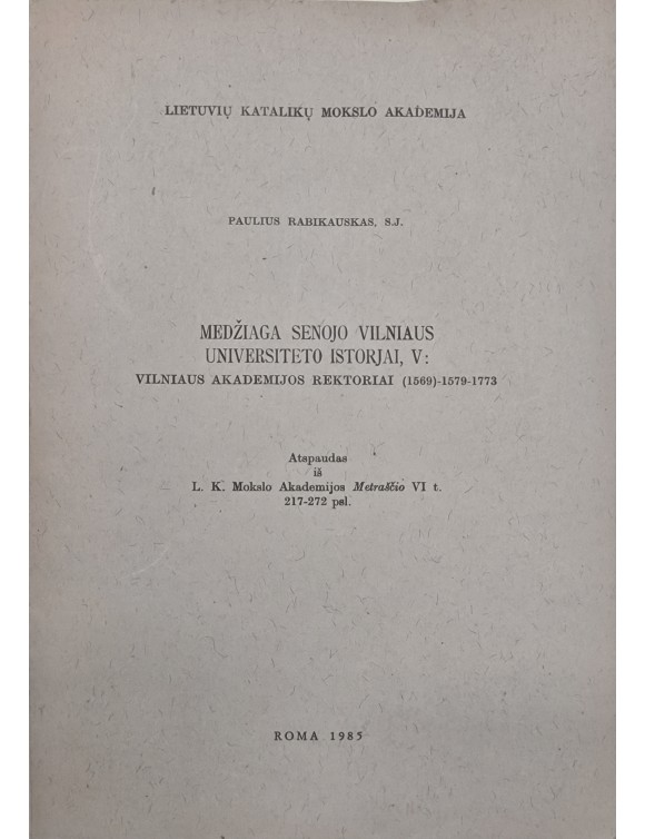 Medžiaga senojo Vilniaus universiteto istorijai. P. Rabikauskas. Roma, 1985.