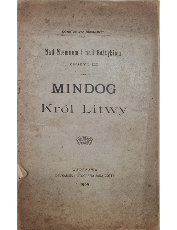 Mindog Krol Litwy. K. Skirmuntt. Warszawa, 1909. Su autoriaus autografu.