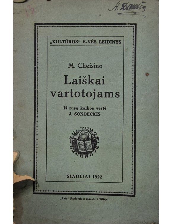 Laiškai vartotojams. M. Cheisino. Šiauliai, 1922.
