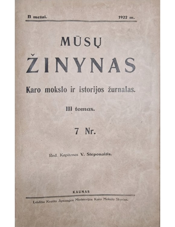 Mūsų žinynas. 1922 m. T.3. Nr.7,8,9. Kaunas. Pusiau odinis įrišimas.