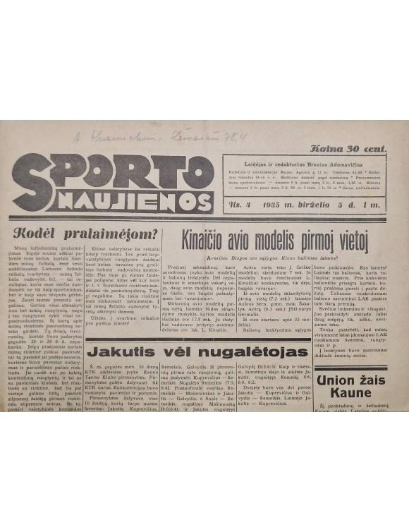 Sporto naujienos. 1935 m. Nr. 4. Yra daugiau atskirų numerių.
