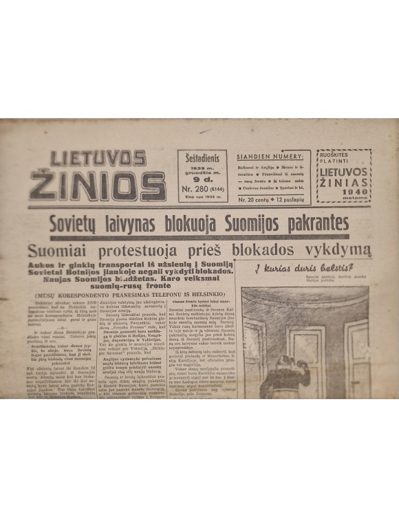 Lietuvos žinios. 1939 m. Nr. 280. Yra daugiau atskirų numerių.