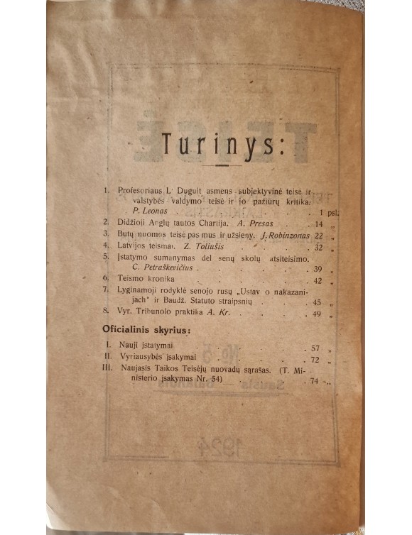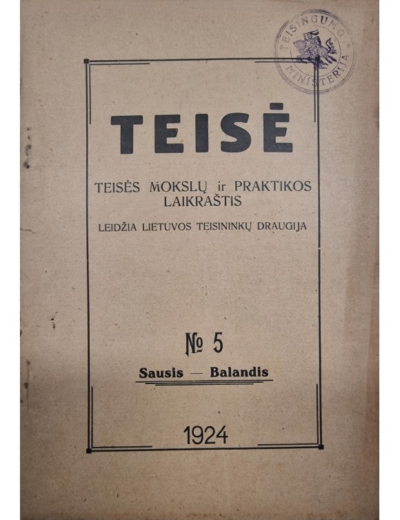 Teisė. Teisės mokslų ir praktikos laikraštis. 1924 m. Nr.5.