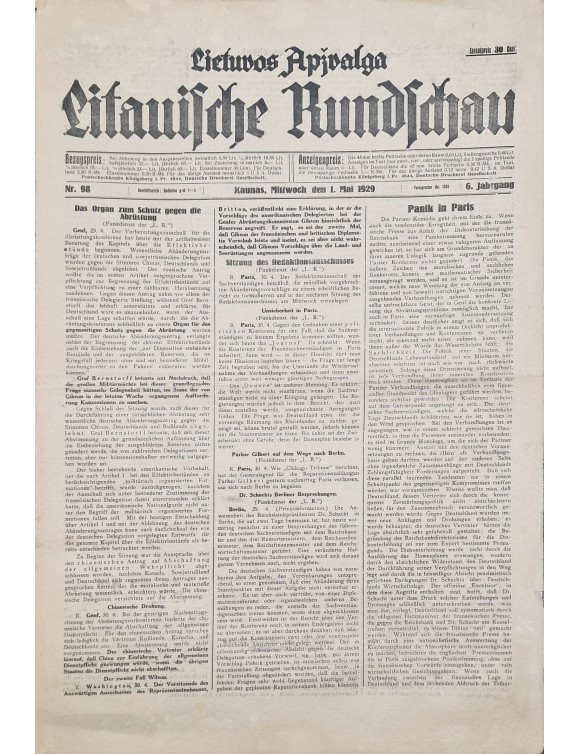 Litauische Rundschau - Lietuvos apžvalga. 1929 m. Nr. 98.
