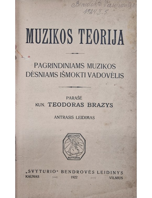 Muzikos teorija. T. Brazys. Kaunas- Vilnius, 1922.