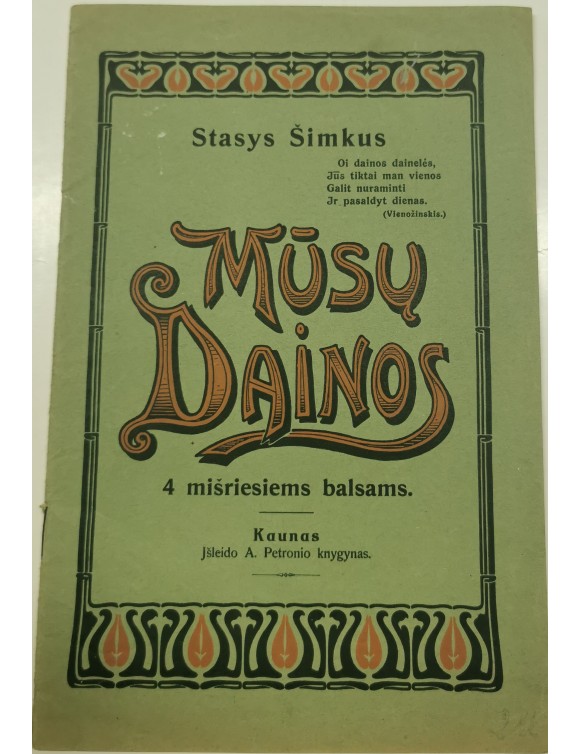 Mūsų dainos 4 mišriems balsams. S. Šimkus. Kaunas.