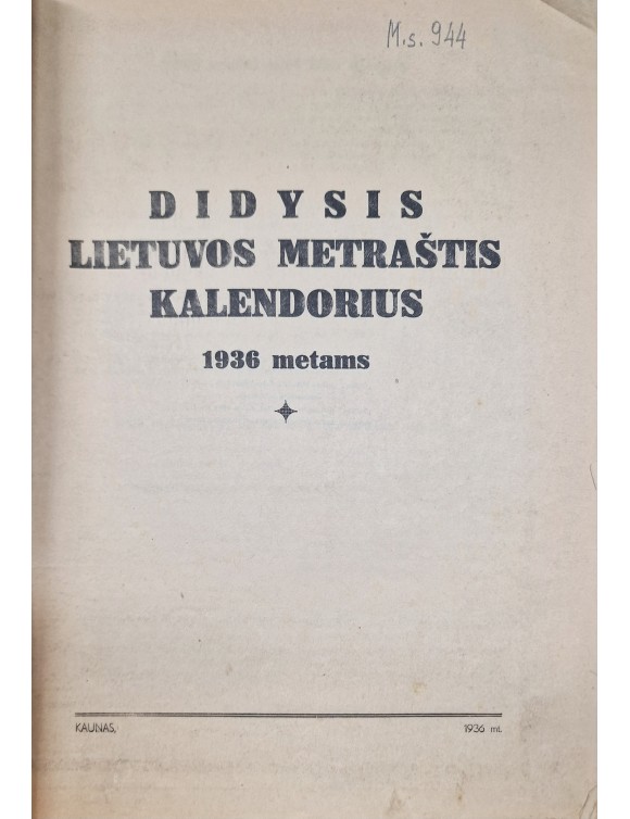 Didysis Lietuvos metraštis- kalendorius. Kaunas, 1936.