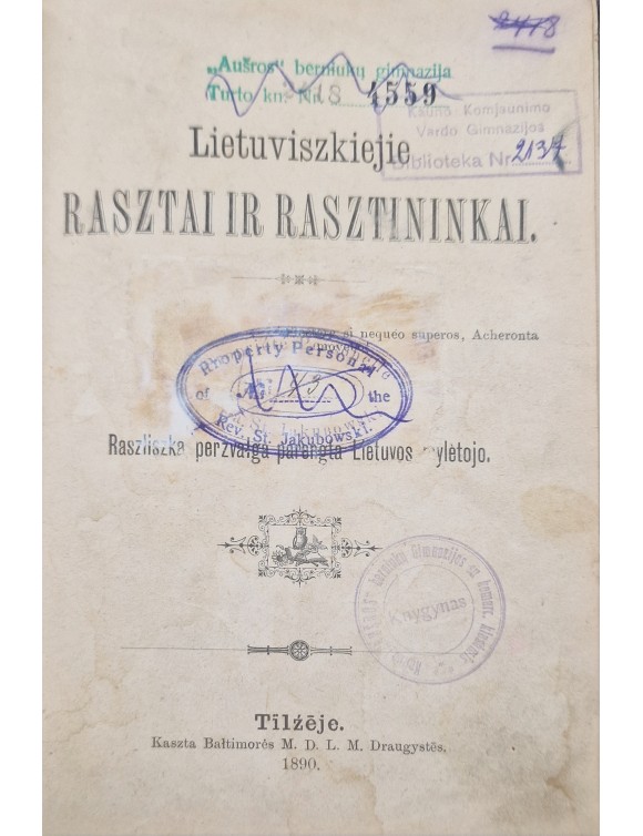 Lietuviszkiejie rasztai ir rasztininkai. [ J. Šliūpas]. Tilžė, 1890. - 234 p.; iliustr.